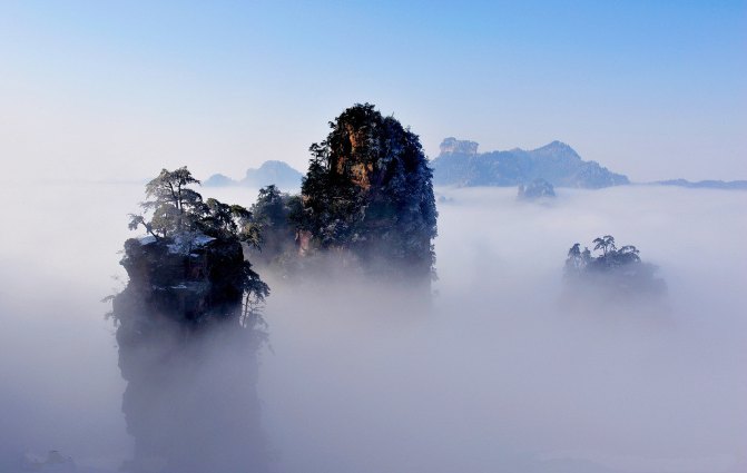 宝峰湖是一座罕见的高峡平湖,它四面环山,一泓碧水,四周青山山景倒映于湖水下,湖光反映着群山,形成山依水,水连山,山屏湖外,湖裹山中的山水风景佳作。