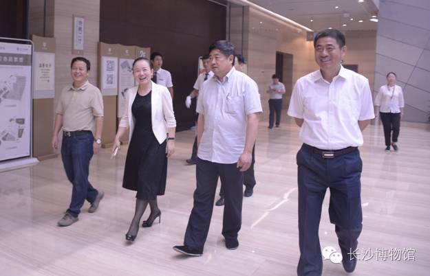 8月27日,文化部党组成员、故宫博物院院长单霁翔,国家文物局党组成员、副局长关强一行莅临长沙博物馆参观考察和指导工作。湖南省文化厅党组书记、厅长李晖,湖南省文化厅副巡视员何强,湖南省文物局副局长江文辉,长沙市文广新局副局长张明清等陪同考察,长沙博物馆全体领导热情接待,并就博物馆相关工作进行了介绍和交流。