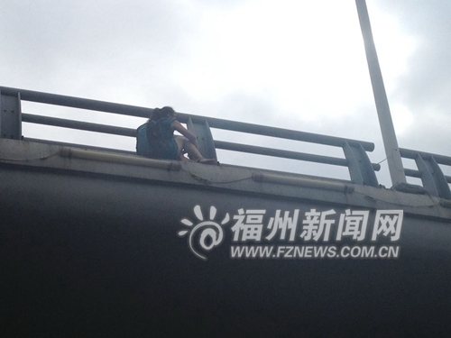 昨日15时,福州火车南站派出所接到指挥中心指令,有人爬到高架桥上(距离地面6米多高),民警迅速赶到现场,只见身材瘦弱的娜娜整个人都在护栏外侧,坐在边缘,随时都有跌落的危险。娜娜的情绪十分激动,拒绝民警的救助,嘴里念叨着“要见儿子”。