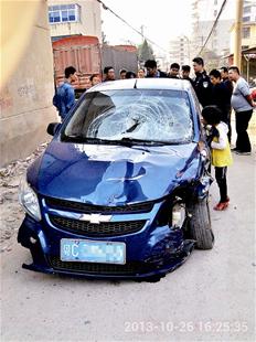 在老火车站附近大理石厂上班的肖师傅告诉记者,蓝色轿车驶入老火车站路段后,撞伤了一名小孩后左前轮爆胎。穿着短袖衣服的男子从车上跳下来,冲进了旁边的老火车站家属楼。