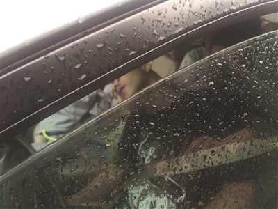 据目击者透露,这辆银灰色的海马轿车停在龙蟠路由北向南一侧公园路加油站附近的车道上,由于当时天空下着雨,又是晚高峰,这辆车停在路中间显得很扎眼。最先发现这辆车不对劲的是潘师傅,他开车路过时发现这辆车雨刮器开着,车主倒向副驾驶。于是,就在该车前面停车,自己下车来到这辆车前,这时,潘师傅才看到,车内后排座位上有一名女童正在嚎啕大哭。“我对这名司机的状态有点吃不准。”潘师傅称,不知道是吃酒了还是困了或者是身体不好。无奈之下,潘师傅一边安抚着车内的小女孩,一边打电话报警求助。