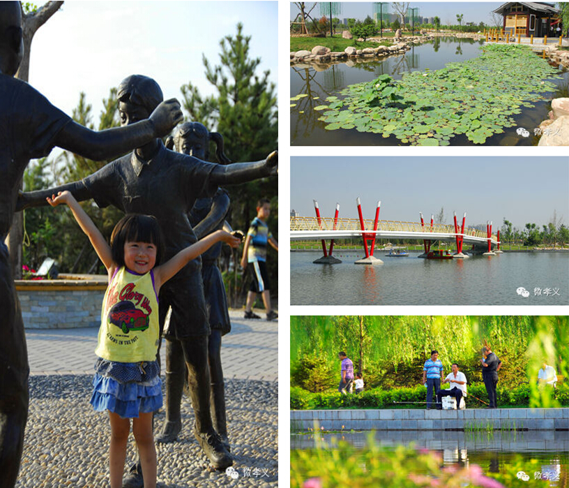 孝河湿地公园东起胜溪湖(张家庄水库)大坝(湖滨路),西至旧孝午路(白壁关公路桥),南至景观南路及沿河岸景观小路,北至景观北路(时代大道)。公园总面积5.47平方公里,其中水面面积约2.89平方公里。该工程于2011年11月启动,去年3月正式开工以来,历时一年半建成了集区域水利、生态修复、休闲旅游、文化娱乐、民俗展示、科普教育和湿地景观于一体的城市人文生态系统。园内蓄水清澈,花香四溢,充分保留了原始自然风貌,浓缩了孝亲文化的精髓,凸显了山清水秀的特色。目前可游览面积2.4平方公里,栽植乔灌木50余种、22万株,包括120万立方的小象湖等大小湖泊19处,完成了观鸟台、九曲栈桥、码头广场、橡胶拦水坝、桥梁公共服务设施等建筑和景点。路线:沿时代大道往西左转驶入汾孝大桥,路西可见。