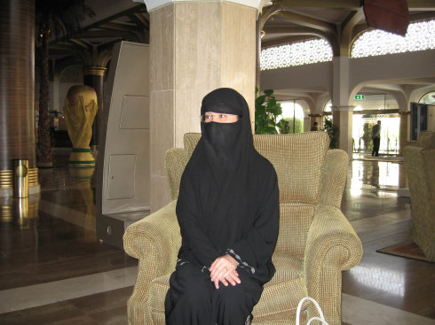 去沙特之前,斯旺夕照已经做好了充分的准备,既然那里的规定是女士必须要穿黑袍,我们又是到那里去作客,那就客随主便吧。其实,放开胸襟想一想,西装不是我们的传统服装,女士的晚礼服更不是中国的传统服装了。而在二十一世纪的中国,假如大家去出席有国际友人,特别是有欧洲人的场合,无论是谈判还是宴会,男士们都会穿上西服。出席晚宴的时候,假如请帖上有dressing code,要求穿晚装的,女士们也多数会穿上露出香肩的晚礼服。那么,我们到沙特去,对方要求的dressing code 是黑袍,我们就穿黑袍吧,不是很正常的事吗?斯旺来自礼仪之邦,这点规矩还是懂的。因此,在离开阿联酋之前,俺就买好一件黑袍,准备粉墨登场了。