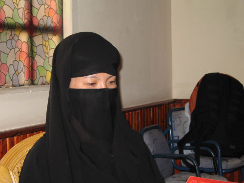 穿上黑袍,俺验证了一个真理:衣着塑造行为。由于长期从事竞争性的行业,俺N年之前就养成了大步快走的习惯,黑袍一加身,立马就换成了小碎步。这小碎步越走越熟练,离开的时候,俺觉得自己都可以去跳俄罗斯的环舞了。刚穿上黑袍那阵,我们分团的男生们都抢着跟俺合照,估计是回国后去忽悠别人。那股热劲一过,俺就成为一个黑影,默默的跟在这帮哥们身后。这倒好,假如演艺明星们的脸上的墨镜可以拒影迷千里之外,那么,俺身上的黑袍绝对可以把非同类项化为无形。那几天,俺节约了不少口水,少说了不少应酬话,少做了不少不必要的动作。更妙的是,露在黑纱外面的眼睛,可以肆意的打探俺感兴趣的事物而不会引起别人的注意。