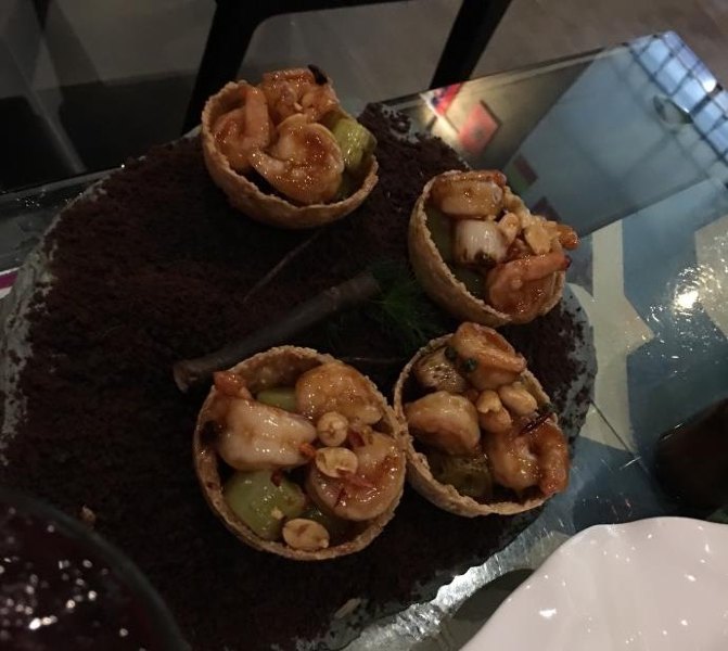 去了朋友安利的一家店。说要来厦门一定要去吃宴遇。坐公交车到中山路或者中华城站下车走个大概五六分钟就可以找到了。造型精致,味道上乘,很不错的体验,希望早日来我家乡开店。炭烧的鳕鱼味道浓郁,肉质松软,柠檬汁打成泡沫状使造型美观,也解腻。宴遇是来厦门吃的第一餐正餐,本来想去尝尝本地菜,但是看看人气排行霸占头名,还是尝尝吧~确实也没来错,送了两瓶饮品,用木匣子装着神秘兮兮的。
