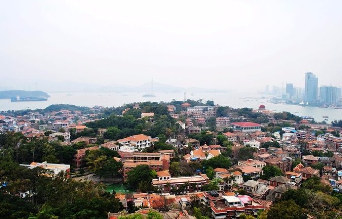 在附近匆匆吃完后,我们打车去轮渡,买票做船去鼓浪屿