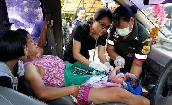 赶来的路人看到情况后立即给当地的一个医疗组织Petchkasem打电话,当医护人员赶到时决定在路边进行了一次简陋的接生。最后值得高兴的是母子平安,送到了附近的泰国城市华欣的医院接受进一步检查。