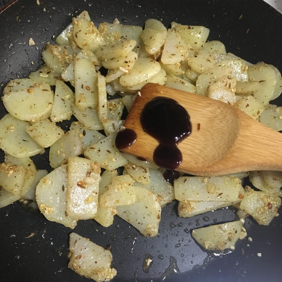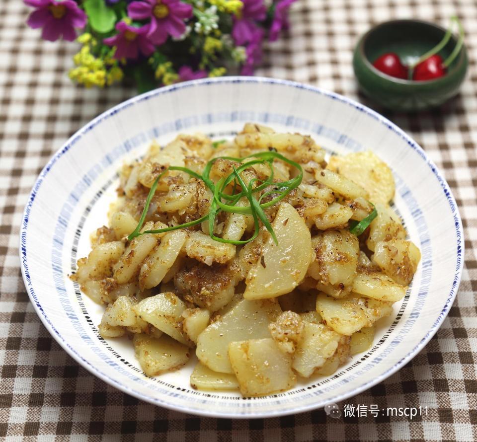 【孜然土豆片】昨天带两孩子去参加了英语比赛,要回家时,孩子们说饿了,于是和同学们一起去吃了鸡排,顺便还要了两串烤串,感觉鸡排还可以,但烤串的味道就差远了,今天特意做了这道孜然土豆片,果然孩子们都说比昨天的烤串还香呢,很正宗。[img]?url=0G3wr3Xn9W[/img]主料:土豆500克,姜末、蒜末、香葱各适量;调料:辣椒粉、孜然粉、花椒粉、孜然粒、盐、蚝油各适量;[img]?url=0G3wr3k5w5[/img]做法:1.土豆洗净去皮切0.5厘米厚的片,再冲掉多余的淀粉,煮熟,捞起沥干;[img]?url=0G3wr3jZ8v[/img]2.煮土豆的同时准备好辣椒粉、孜然粉、花椒粉、孜然粒、盐,姜末、蒜末、香葱;[img]?url=0G3wr3diOg[/img]3.平底不粘锅烧热,放入少许油,再放入土豆片略煎,盛出待用;[img]?url=0G3wr3jHKa[/img]4.锅内继续加油,下蒜末、姜末转小火炒香;(注意别炒糊了)[img]?url=0G3wr3kD34[/img]5.下入辣椒粉、孜然粉、花椒粉、孜然粒、盐,炒香拌匀;[img]?url=0G3wr3VpfZ[/img]6.土豆片入锅中;[img]?url=0G3wr3BwK7[/img]7.颠锅,把土豆片颠炒一分钟;[img]?url=0G3wr3XAoI[/img]8.加入蚝油继续颠匀即可;[img]?url=0G3wr3HnC2[/img]9.出锅装盘,撒上葱丝;小贴士:1.土豆最开始已经煮熟了,用平底锅颠炒的方式最合适不过,如果用铲子炒的话,土豆很容易碎;2.再者也最好用不粘锅颠炒(土豆煮得比较熟后淀粉很多也容易粘锅)整道菜土豆香辣绵软,孜然香有烧烤的味道;[img]?url=0G3wr3t6H7[/img]如果您不会做饭?不会炒菜?不会煲汤?不会烘焙?欢迎关注我们的微信公众号:mscp11(教你学做饭)