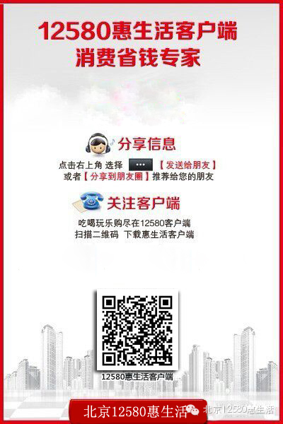 更多优惠更多惊喜尽在北京12580惠生活!关注我们,给您方便!