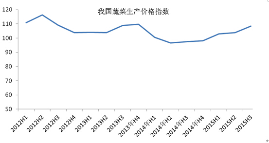 蔬菜是城乡居民生活的必需品,促进蔬菜生产、保障市场供应和价格基本稳定是重大的民生问题。近年来,我国蔬菜产业发展迅速,总体上满足了城乡居民对蔬菜数量、质量、品种日益增长的需要。不过由于蔬菜价格受供求弹性差异、自然因素干扰、生产要素流入流出障碍等因素的影响,自由市场价格体制不能正常而有效地运转,导致蔬菜市场发展存在价格频繁大幅波动现象,因此我国已经建立了蔬菜价格调控体制,总体方向是在保持价格基本稳定的基础上,允许蔬菜价格逐步合理上升;要逐步建立蔬菜价格与生产成本以及城镇低保水平联动机制,针对不同品种制定不同的调控和支持政策,尽量减少价格的大起大落。下图是我国2012年-2014年各季度蔬菜生产价格指数,上年价格为100基数,可以看出目前蔬菜生产价格基本保持稳定态势,在100上下波动。