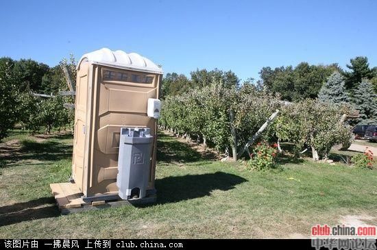 图58:为了防止客人乱扔垃圾,园内有很多垃圾筐,在采摘区内,放置着很多供客人放吃剩的苹果残核儿的塑料桶。