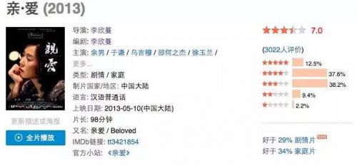 Sir搜了一下这部《亲·爱》,余男和于谦主演,豆瓣上3022人评价7.0分。