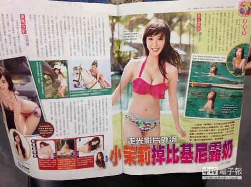 小茉莉从去年“我要强奸你”影片事件曝光后,沈寂了大半年,最近推出第二本写真书,预购当天开卖才半小时,就冲上排行榜首位,不过据媒体报道,小茉莉在拍摄写真集时穿着无肩带比基尼,在水池中游来游去,此时比基尼却不慎滑落,她左边胸部整个露出,但她却没发现,等到一旁的工作人员看到后,立刻提醒她,才尴尬地回头笑了一下,潜入水内穿好比基尼。