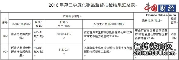 不合格产品信息为:江苏隆力奇生物科技股份有限公司生产的批号为50502AA1的新活力去屑洗发露400ml/瓶*5瓶不合格,苏州珈华生化有限公司生产的批号为515302的阿迪达斯男士舒缓止痒去屑洗发露400ml/瓶*3瓶抽检不合格。
