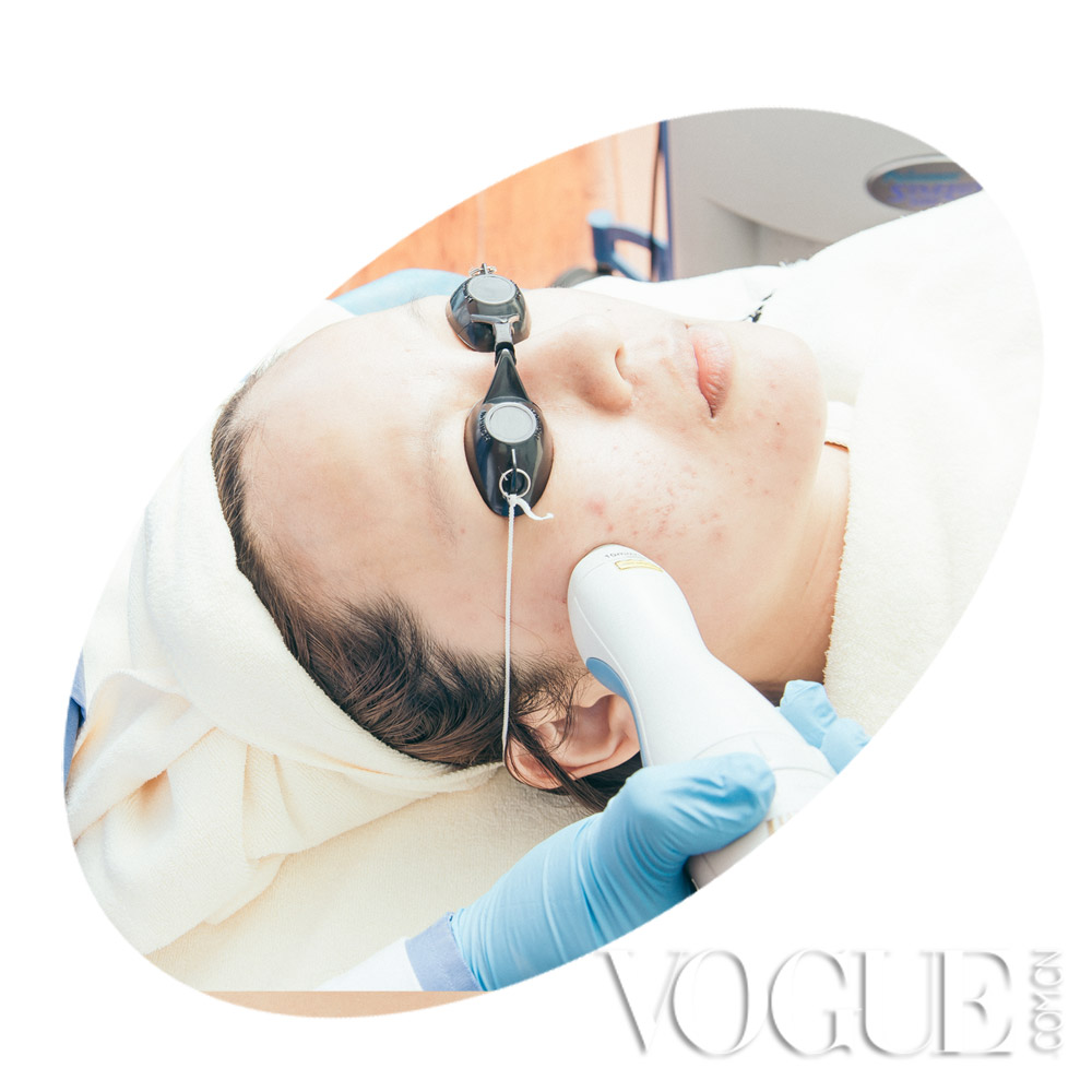 Step 2:需要带上眼罩避免光能刺激眼睛,由专业医生操作,针对痘疤的严重程度和不同部位,医生会调节激光强度,来达到最好的治疗效果。