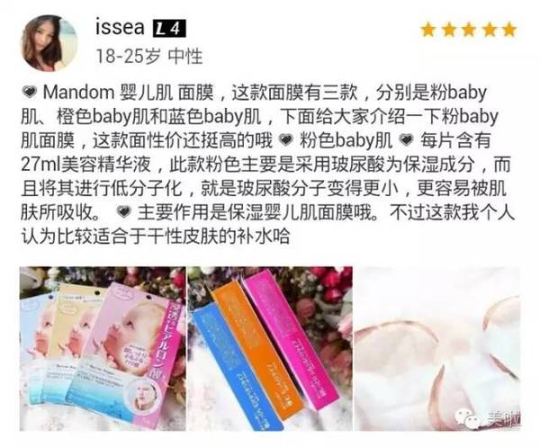 日本人气很高的一款保湿面膜,性价比很好哦。含丰富低分子高保湿透明质酸分子,只有普通透明质酸百分之一的小分子,更易浸透至肌肤深层,干燥肌肤对策,让你拥有婴儿般水嫩肌肤!