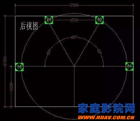 一样,主箱和顶置后环绕,一样等分了半个圆周,每个喇叭之间夹角是60度。