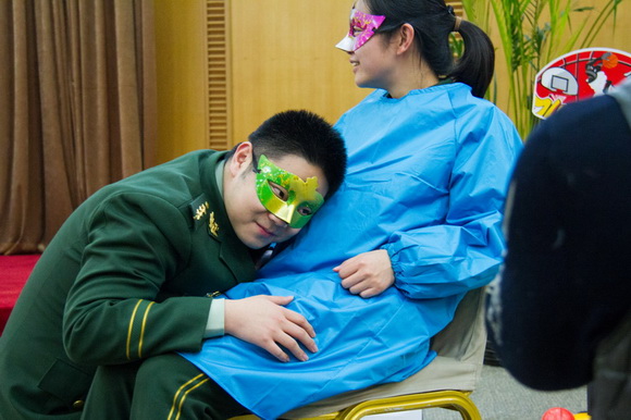 图片说明:体验结婚生子“训练”的新婚小夫妻