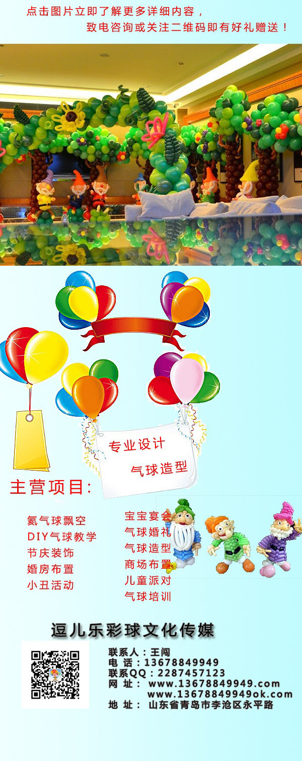 青岛李沧区开业百天家庭布置哪家比较好。青岛逗儿乐(青岛阿拉丁儿童主题派对)以气球装饰工程:店铺开业、店铺活动、品牌专柜气球布置,店铺活动装饰。节日主题气球秀、氦气球派送,全城速递气球礼品为服务终咨询电话:13678849949