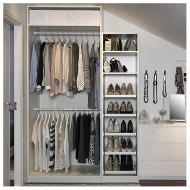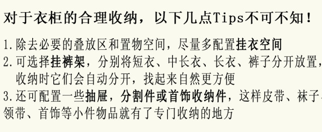 而很多人认为搁板是衣柜中最主要的配件,把衣服叠起来就可以了。但是,你知道吗,89%的人会因此找不到东西。女人在一生中需要花1.5年,在衣柜里寻找衣服。即便找到了钟爱的衣服,也不容易取出。因此为了找衣服,早上的卧室总是变得凌乱,夜晚回到家还得收拾?
