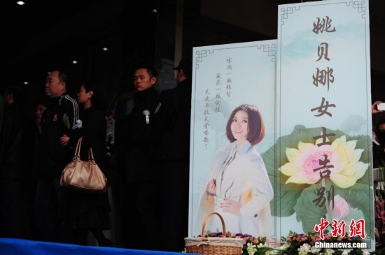 1月20日上午,姚贝娜遗体告别仪式在深圳市殡仪馆大礼堂举行,大批歌迷前来送别。有歌迷早晨6时就到了现场等候。现场播放的是姚贝娜自己的歌曲《金缕衣》《红颜劫》等。陈文 摄