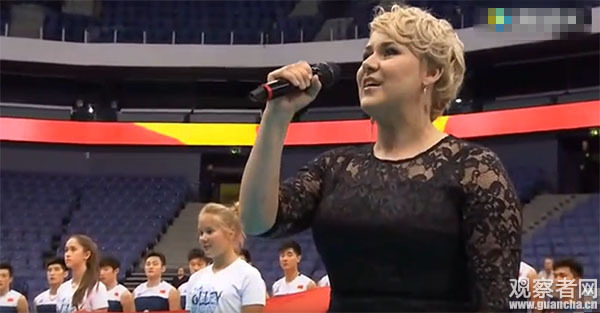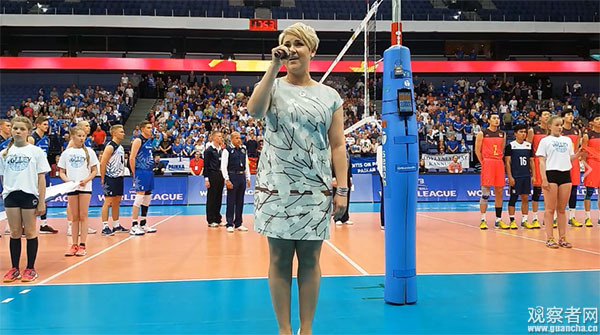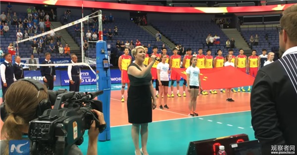 感动!男排世联赛中国队赛前 芬兰女歌手中文清唱中国国歌