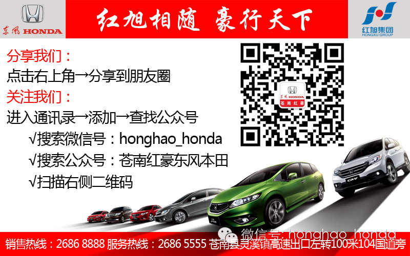 更多好玩资讯,敬请关注【苍南红豪东风本田】或【honghao_honda】