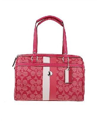蔻驰 玫红色C LOGO条纹时尚波士顿包