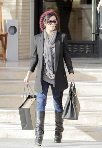 值得注意的是,她手中拎的也是黑色的铂金包,相对之前两个人,卡戴珊显然走的是一条与众不同的路线。不过这样的长西装搭长靴,如果你的腿不甚修长,可是极为冒险!
