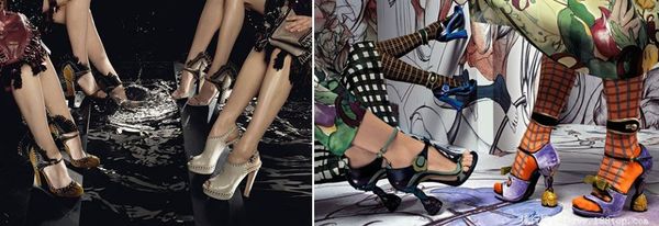 2011最新女鞋系列,延续了服装的条纹设计以及荧光色系的运用,也让这一季的配件设计,相当的出众,结合后底设计的英国牛津鞋,也的确十分有意思。 Prada 2011彩纹的编织造型女鞋,搭配银光闪闪的鞋扣,脚底是厚厚的“恨天高”。