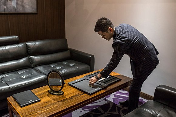 Thiri Thein Than在这家店买了一块粉金色的月相表,表盘上有一个小月亮会根据阴历起起落落。他说这块手表售价为33500美元,同事们都夸这块表好,这让他觉得自己很独特。
