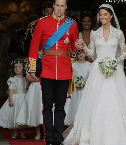 2011年4月29日英国皇室威廉王子大婚,当凯特王妃穿著米白色古董蕾丝长袖V领2.7M裙摆的婚纱出现时,世界为之惊艳。