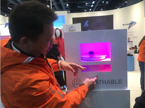 在28日开幕的亚洲运动与时尚展上,上海葵然贸易有限公司(以下简称“上海葵然”)展位前,人们围着三个装置议论着。葵然面料供应商德国SympaTex(新保适)科技亚洲有限公司销售总监(中国区)彭文辉一边为大家演示,一边介绍说,这三套装置是SympaTex公司专门研制的,用事实说话,形象地向人们展示上海葵然高端订制户外用品防水、防风、透汽性三大功能优势。