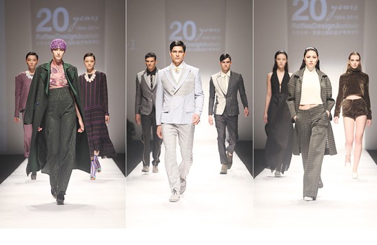 为了庆祝莱佛士学院建校二十周年,一场名为“莱佛士二十周年秀”的时尚大典在新天地隆重上演。9位刚从莱佛士学院时装设计专业毕业的学生和10位知名校友共同演绎了上海时装周2014/15秋冬发布最独具特色的一场秀。