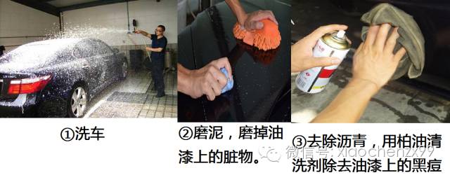 洗车,当然是把爱车好好的冲洗干净了,最好是用专用的洗车液彻底清洗干净。 ②磨泥,洗完车后在车上涂些泡沫,用专用的泥在车漆上磨,确保泥上没有其他脏物,直到汽车油漆手摸上去很光滑。 ③去除沥青。白色车更明显,车在沥青路面行驶,难免会长“黑痘”,柏油清洗剂是个好帮手。 ④再次洗车,清洗前面处理下来的脏物。