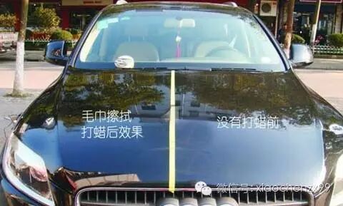 第三,打蜡,现在市面上的两种打蜡方式。手工适用于想水晶蜡这样的上光蜡,前面说到黑蜡也行。具有抛光功能的蜡可以考虑用机器。 手工打蜡是以来回画圈的方式在车漆上行进,有三分之一重合,均匀地涂抹在车漆表面,不需要涂太厚,薄薄的一层即可,确保每处油漆上都能上蜡。注意:塑料,金属不适合上蜡,尤其是黑色塑料泛白就难看啦。