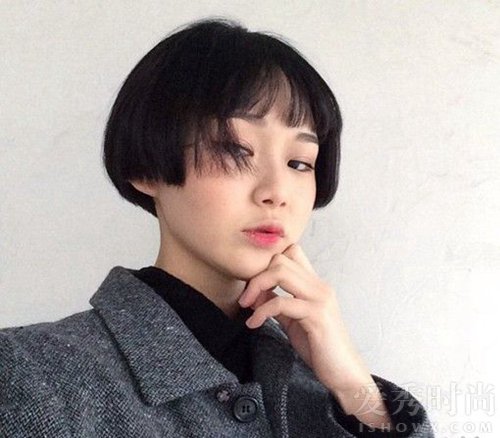 冬天最常见的齐脖波波头,发尾刚刚到下巴,包住脖子,再也不怕冬天会很冷了,低垂直发设计更清纯。