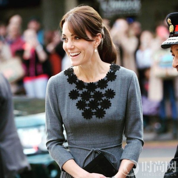 这是皇室发型的大胆尝试--凯特王妃保守地变化了发型,刘海留长并向一边捋顺,只有微小的变化但也让人眼前一亮。
