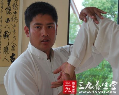 后坐扣脚,成正马步,以腰带手,右翻左架,两拳心朝上。>>>武当密传太极拳拳谱 四十八式动作松静自然
