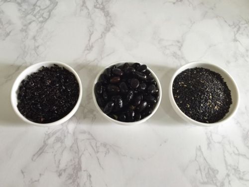 7. 黑豆需提前用清水泡8小时以上,黑米淘洗干净,芝麻炒熟。