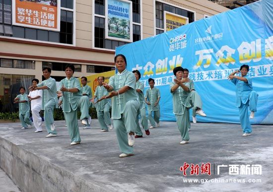 每当晨曦初露的早晨,或是华灯齐放的夜晚,在广西容县的南北河堤街、绣江公园、侨乡广场、会堂广场、火车站广场等公共活动场所,到处都是练习打太极的人们。习武者的一招一式,都在教练或熟练者严格辅导下进行,令晨炼或晚炼过往的群众注目观看,称其对颐养性情、强身健体大有好处,有的甚至情不自禁地加入太极练习的队伍。