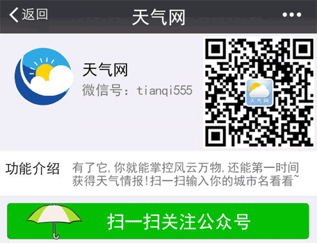 扫描微信二维码,关注天气网微信(tianqi555),每日城市天气,气温变化,空气质量,生活养生资讯早知道!