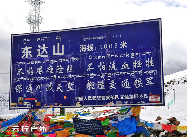 过了觉巴山便开始翻越东达山,从芒康前往八宿的途中会翻越三座大垭口,分别是觉巴山、东达山、和业拉山。其中东达山垭口的海拨5008米,是滇藏线第一座高于5000米的垭口,夏天这里也有可能寒风刺骨,雨雪交加。