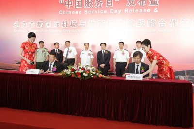 2010年6月25日,故宫博物院与北京首都国际机场股份有限公司在首都机场T3航站楼隆重举行战略合作签约仪式。根据签署的战略合作备忘录,双方将加强彼此在展示和传播中国传统文化方面的公益性合作,为中外旅客创造卓越的出行体验。