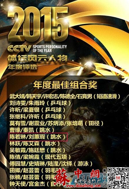 日前,中央电视台2015CCTV体坛风云人物初评名单揭晓,南通籍运动员陈若琳与队友刘蕙瑕入围最佳组合初评名单。