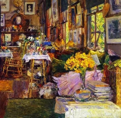 而在比尔·盖茨的图书馆里,则悬挂着施尔德·哈森的印象主义画作《花房》《Room of Flowers》,价值2千万美金(约合1.3亿人民币)。